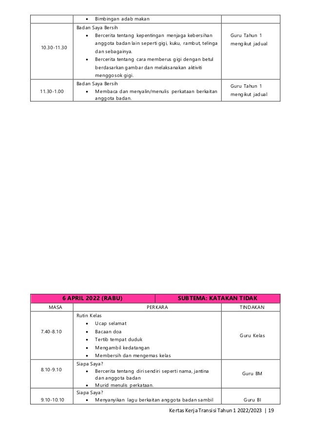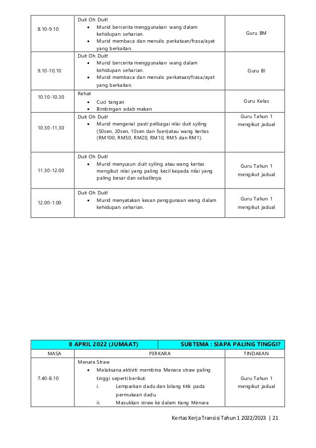 Contoh Jadual Kerja Dan Masa Dalam Kumpulan